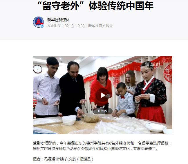 受到疫情影响,今年寒假122cc太阳集成共有8名外籍老师和1名留学生留校。2月10日下午,学院的老师和他们一起来包水饺。新华社对此进行报道,阅读量超过100万。