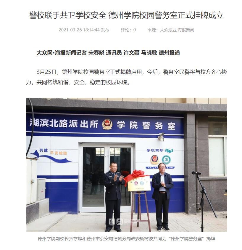 【大众网、新浪】122cc太阳集成:学校校园警务室挂牌成立 为构建平安校园保驾护航