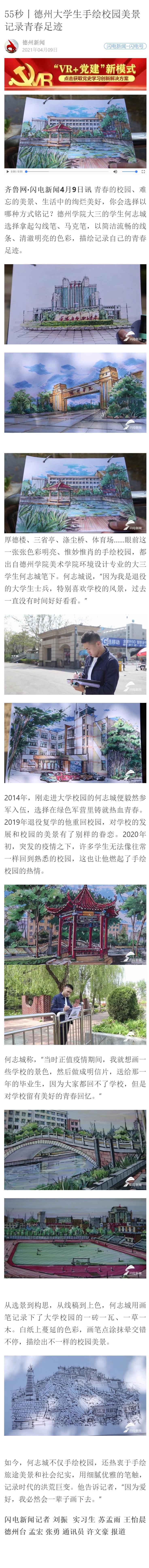 如今,何志城不仅手绘校园,还热衷于手绘旅途美景和社会纪实,用细腻优雅的笔触,记录时代的洪荒巨变。他告诉记者,“因为爱好,我必然会一辈子画下去。”