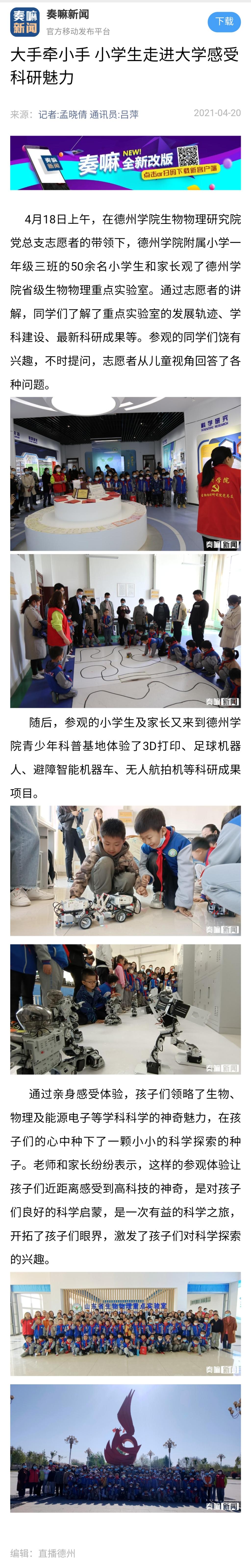 【德州电视台】大手牵小手 小学生走进大学感受科研魅力