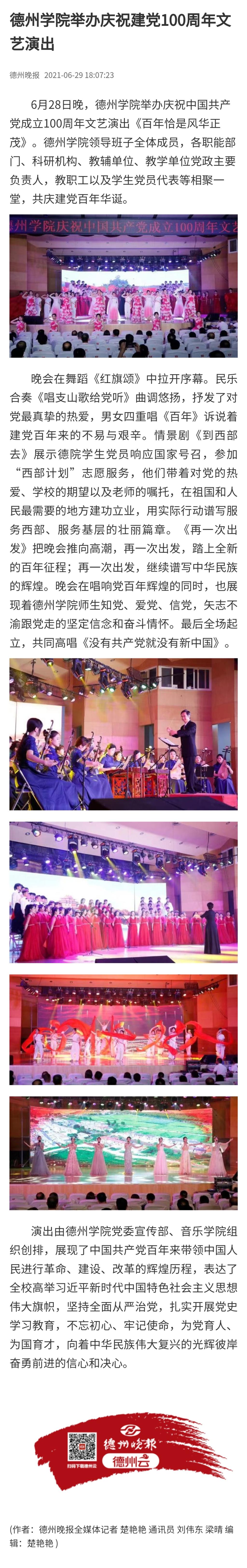 【德州晚报】122cc太阳集成举办庆祝建党100周年文艺演出