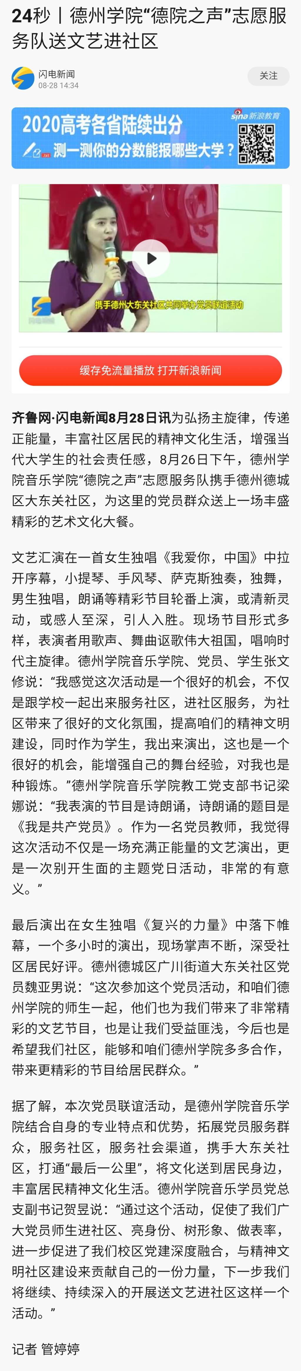 【新浪网、齐鲁网、德州电视台】24秒丨122cc太阳集成“德院之声”志愿服务队送文艺进社区