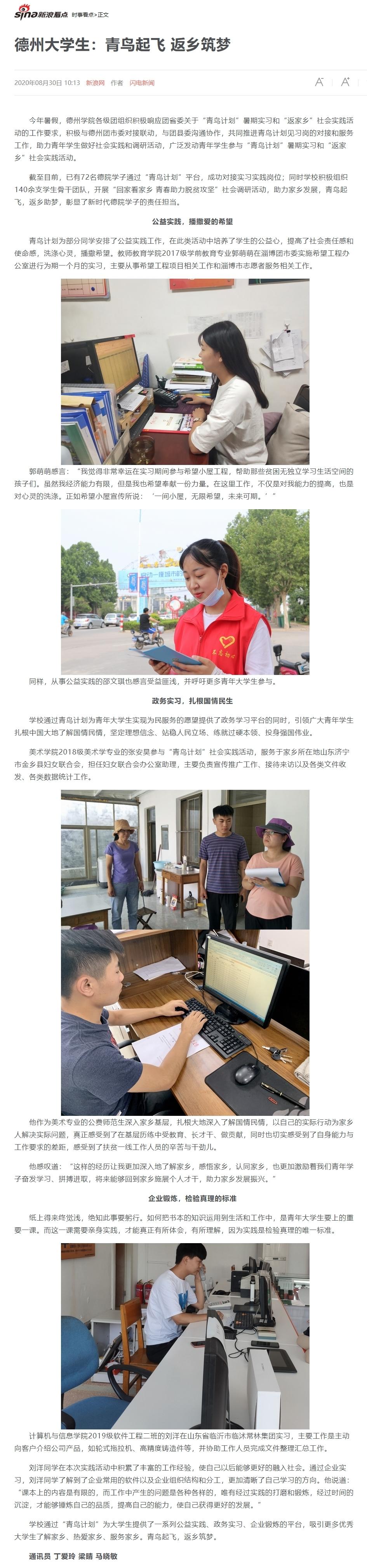 【新浪网】德州大学生:青鸟起飞 返乡筑梦
