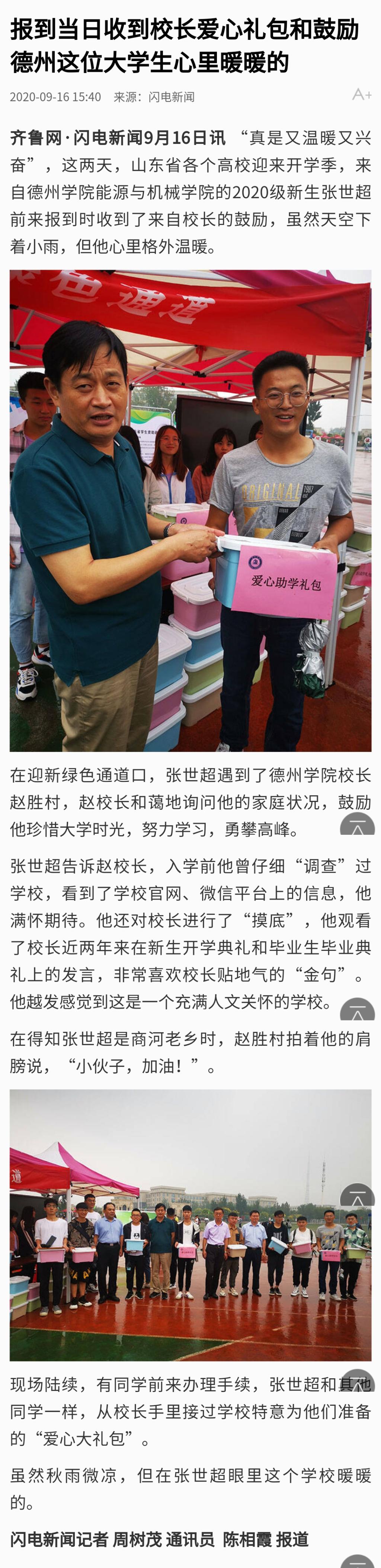 【齐鲁网·闪电新闻】报到当日收到校长爱心礼包和鼓励 德州这位大学生心里暖暖的