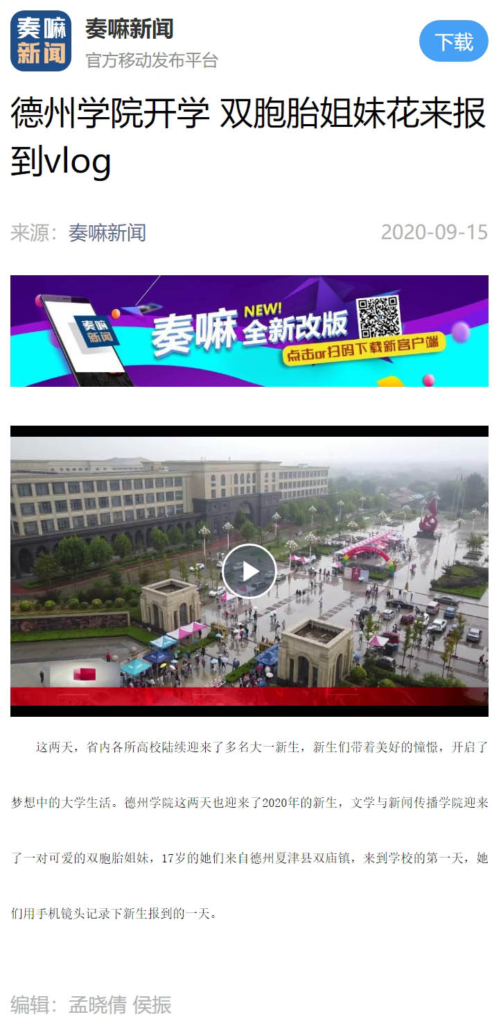 【德州电视台】122cc太阳集成开学 双胞胎姐妹花来报到vlog
