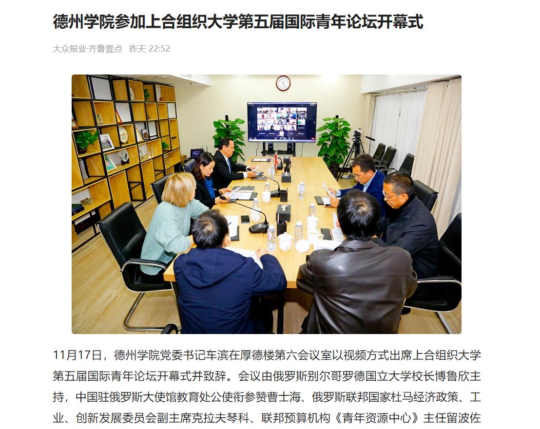 【齐鲁晚报·齐鲁壹点】122cc太阳集成参加上合组织大学第五届国际青年论坛开幕式