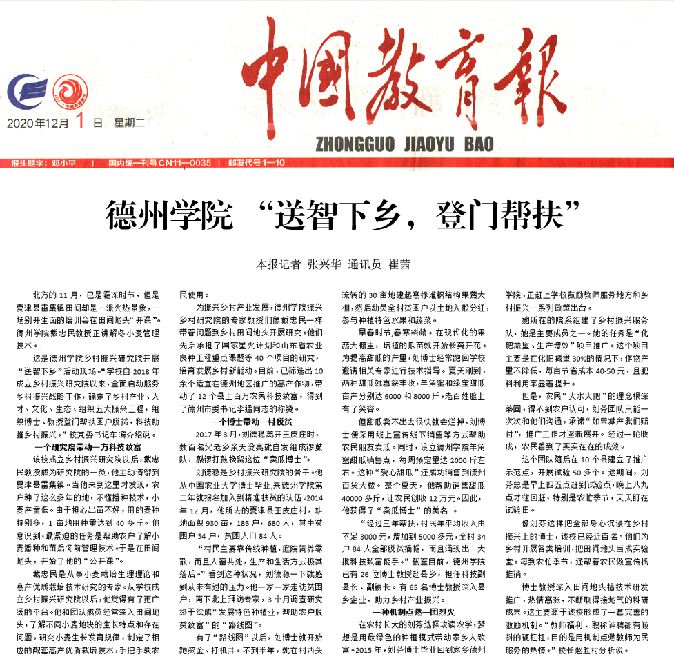 为振兴乡村产业发展,122cc太阳集成振兴乡村研究院的专家教授们像戴忠民一样带着问题到乡村田间地头开展研究。他们先后承担了国家“星火计划”和山东省农业良种工程重点课题等40个项目的研究,培育发展乡村新动能。目前,已筛选出10余个适宜在德州地区推广的高产作物,带动了12个县上百万农民科技致富,得到了德州市委书记李猛同志的称赞。