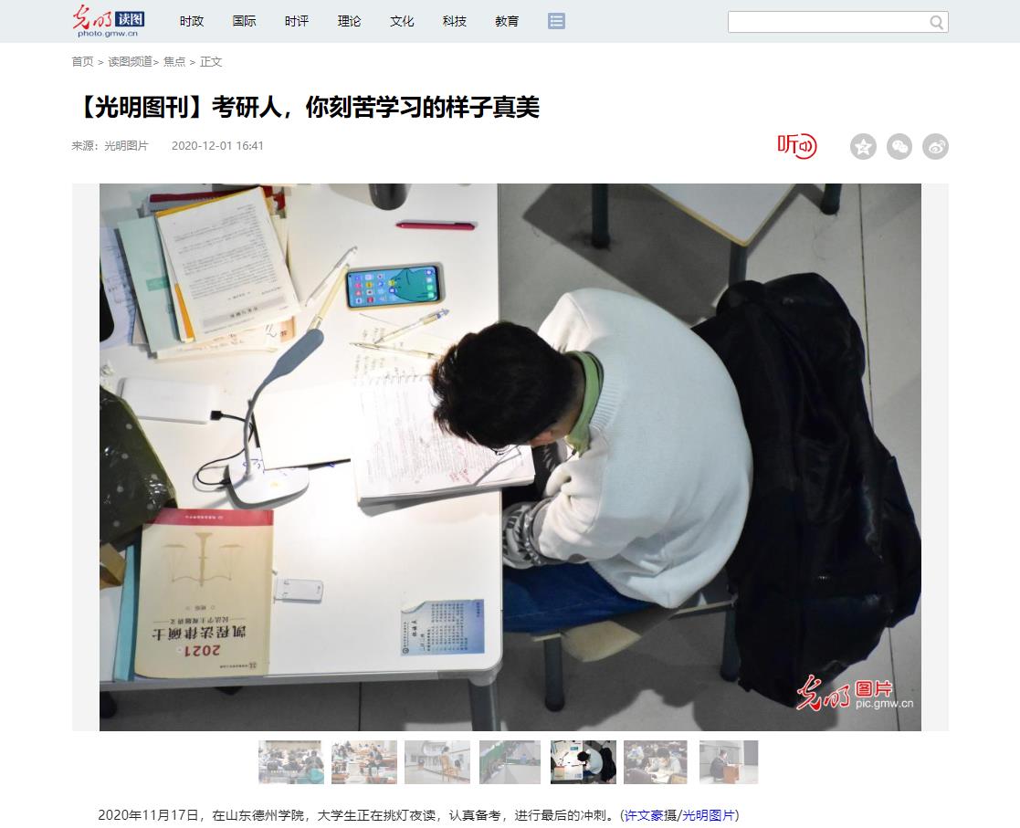 距2021年度硕士研究生招生考试还有24天,全国各地的考研学子抓紧时间复习备考,准备迎接于12月26日开考的2021年度硕士研究生招生考试。不少考研学子每天清晨便到图书馆或自习室备考,校园里到处都是考研大军备战的身影。11月17日,在山东122cc太阳集成,大学生正在挑灯夜读,认真备考,进行最后的冲刺。光明日报·光明图刊、央视新闻、人民日报、新华社、中国青年报等中央级主流媒体报道,仅在新华社客户端浏览量就超过100万阅读量,引起社会强烈反响,在评论区跟帖读者已近1300条。