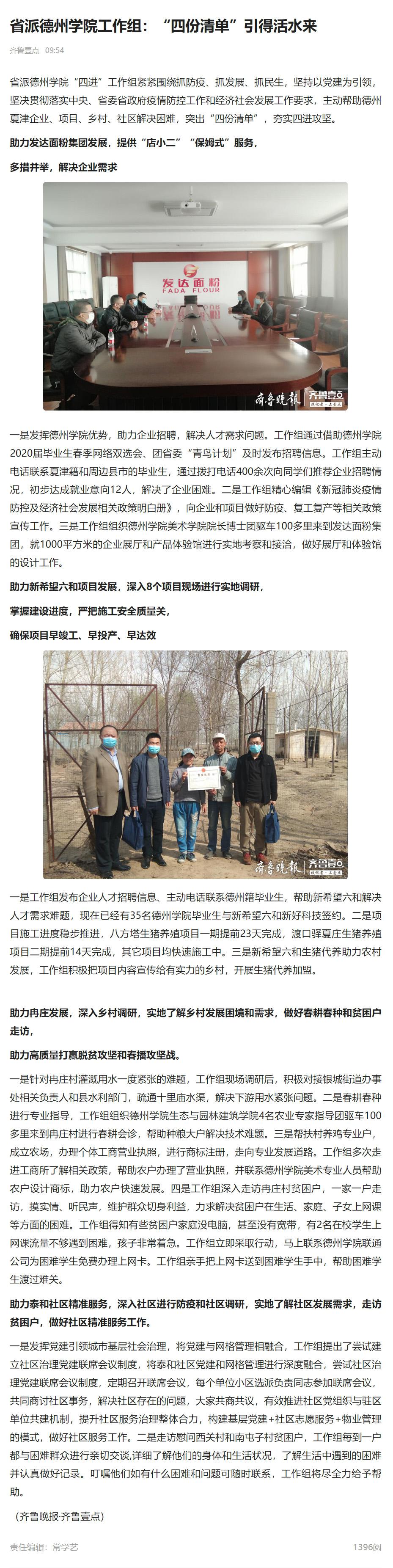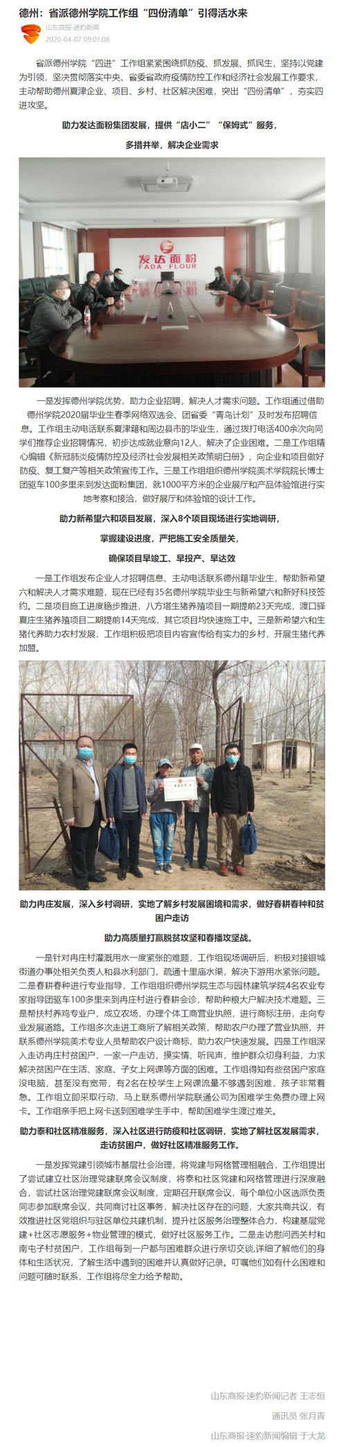山东商报·速豹新闻:德州:省派122cc太阳集成工作组“四份清单”引得活水来