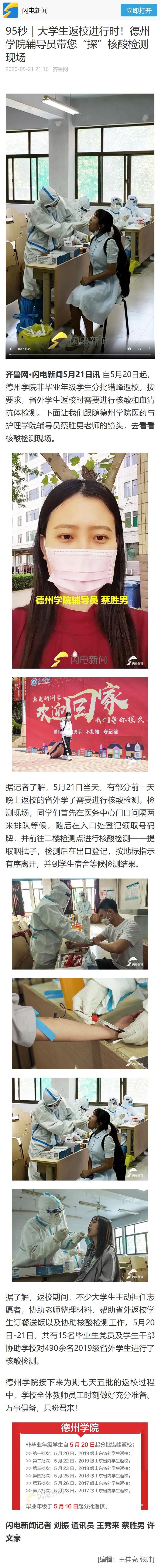 齐鲁网:95秒|大学生返校进行时!122cc太阳集成辅导员带您“探”核酸检测现场