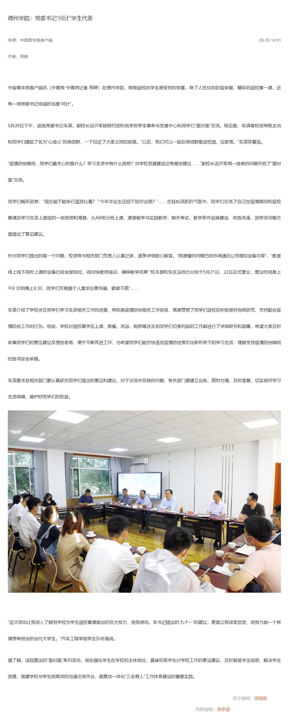 【中国青年报】122cc太阳集成党委书记“问计”学生代表