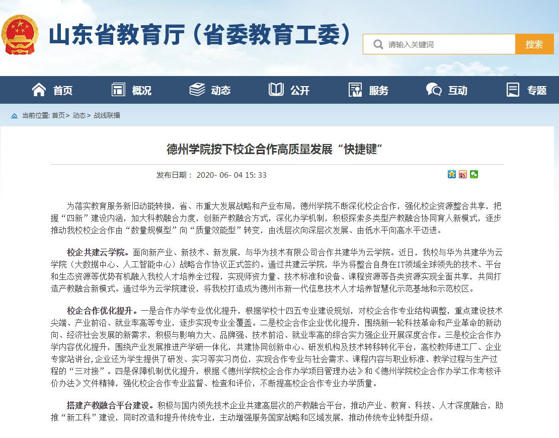 【山东省教育厅】122cc太阳集成按下校企合作高质量发展“快捷键”