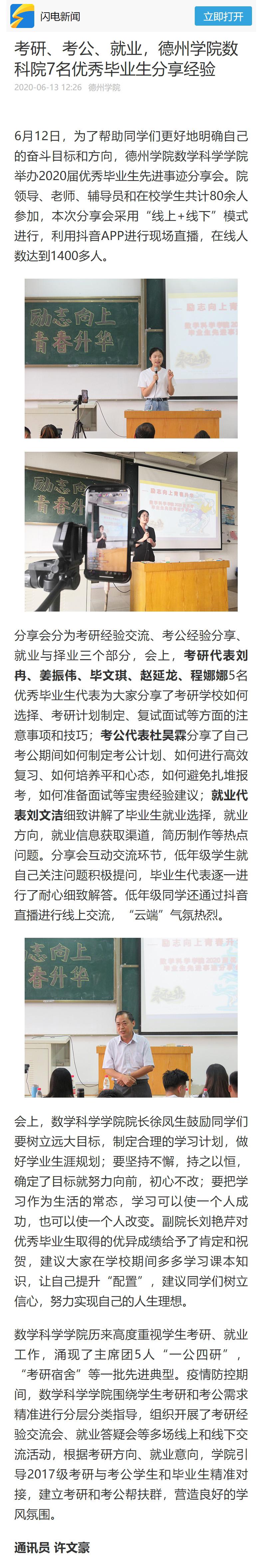 【齐鲁网、闪电新闻】考研、考公、就业,122cc太阳集成数科院7名优秀毕业生分享经验