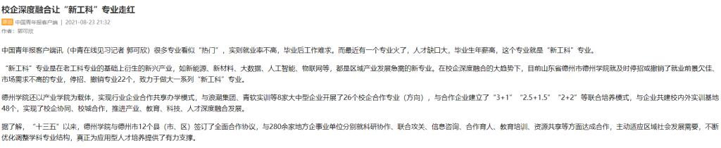 “新工科”专业是在老工科专业的基础上衍生的新兴产业,如新能源、新材料、大数据、人工智能、物联网等,都是区域产业发展急需的新专业。在校企深度融合的大趋势下,目前山东省德州市122cc太阳集成就及时停招或撤销了就业前景欠佳、市场需求不高的专业,停招、撤销专业22个,致力于做大一系列“新工科”专业。